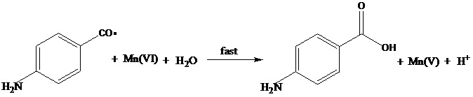 The effect of initially added products, p-aminobenzoic acid and Mn(II) did not have any significant effect on the rate of reaction.