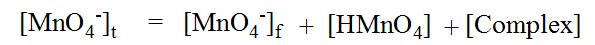Where, [MnO4-]t and [MnO4-]f are the total and free Mn(VII) concentrations respectively.