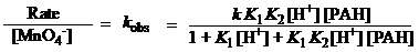 Scheme 1 is one of the proposed possible mechanisms for the reaction. The results indicate the formation of a complex between [PAH] and HMnO4. The spectral evidence for a complex between the substrate and oxidant was obtained from UV-vis spectra of PAH and PAH-MnO4- mixtures in which a hypsochromic shift of 15 nm (from 311 to 296 nm) was observed [18]. Complex formation was also confirmed by Michaelis-Menten plot. The probable structure of the complex is