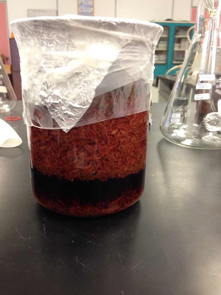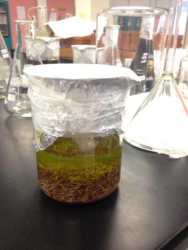 Fig. 1: Soaked and dissected plant samples in methanol and hexane