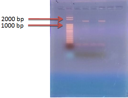 Fig. 3: Agarose gel electrophoresis of amplified 16S rRNA gene of AD-7 strain, n = 6