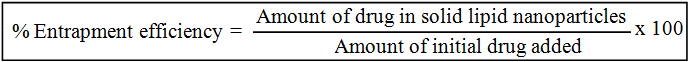 The entrapment efficiency was determined by analyzing the free drug content in the supernatant obtained after centrifuging the lipid nanoparticulate suspension in a high-speed cooling centrifuge (Remi instruments Ltd, India) at 1,7000 rpm for 1 h at 0 °C. The entrapment efficiency was calculated as follows and shown in table 1.