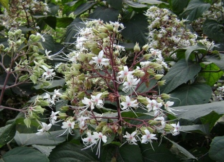 C.infortunatum Linn. (Family: Verbanaceae, Kingdom: Plantae, Genus: Clerodendron) known as Bhat in Hindi, Ghentu in Bengali, Bhania in Oriya, is a terrestrial shrub occurring throughout the plains of India. Having square, blackish stem and simple, opposite, decussate, petiolate, exstipulate, coriacious, hairy leaves with a disagreeable odour [9]. The shrub is of 2-4 feet in height [10]. Flowers are bluish-purple often white in pyramid shaped terminal panicles. The plant is slightly woody shrub in nature with blunt quadrangular sterns and branches, leaves are usually three at a node, sometimes opposite oblong or elliptic, serrate, flowers are blue, many in long cylindrical thyrsus and the fruits are four lobed purple durpe, somewhat succulent with one pyrene in each lobe [11]. The microscopic characters of the root involve stratified Cork, phelloderm, stone cell layer, cambium, large lignified vessels, xylem fibre etc [12].