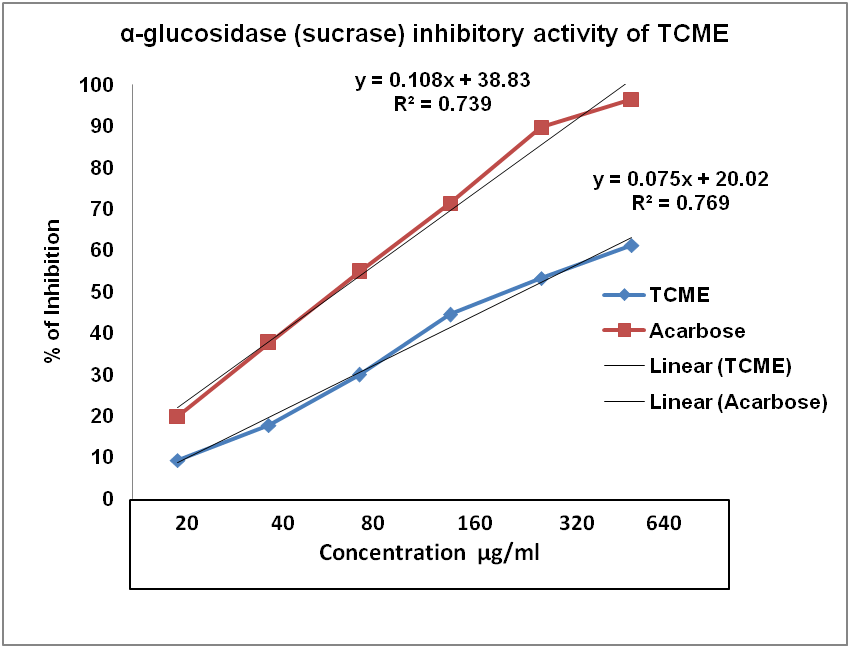 Fig. 1: Effect of TCME on α-glucosidase (Sucrase) and amylase inhibitory activity