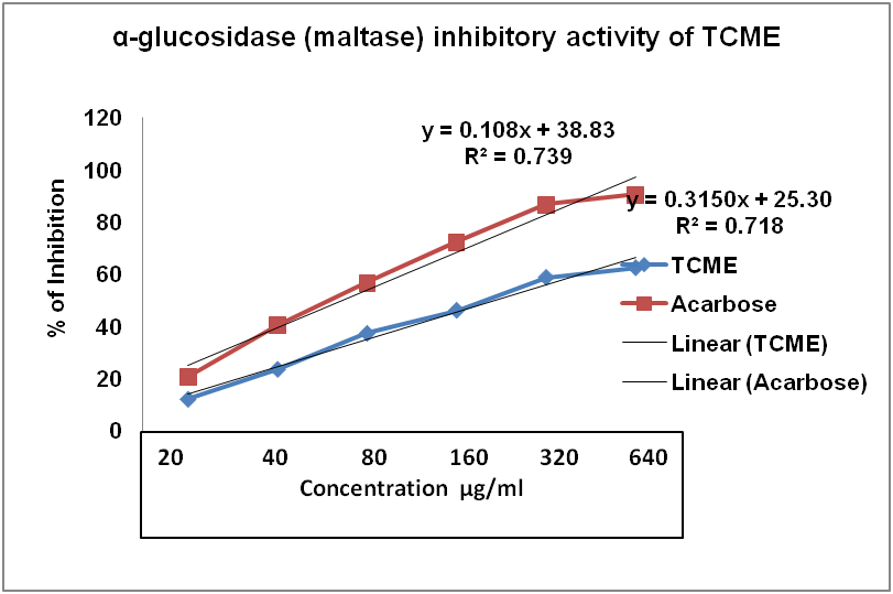 Fig. 2: Effect of TCME on α-glucosidase (maltase) and amylase inhibitory activity