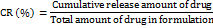 The statistical significance of the results obtained from the release study was analyzed by one way ANOVA using SPSS (Version 17.0) software. A difference below the probability level of 0.05 (95% confidence interval) was considered statistically significant.