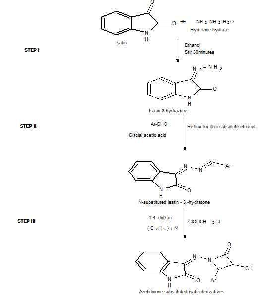 Fig. 3: General scheme for the synthesis of azetidinone containing isatin derivatives