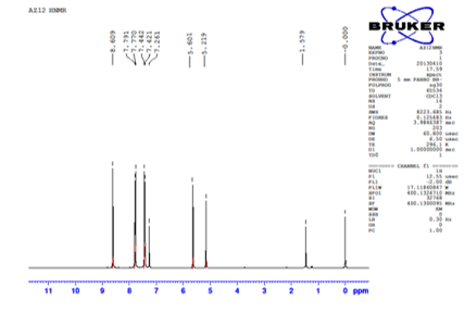 The synthesized compounds were characterized by IR, 1HNMR and Mass spectroscopic methods. The IR spectra of the synthesized compounds are presented in table 6, 1HNMR report for compound AZ -12 is shown in Graph 1 and the mass spectrum report for compound AZ – 13 is shown in Graph 2.