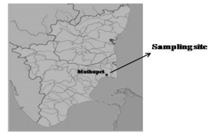 The underneath soil samples (15-25 cm) were collected from mangrove locations as presented in the GPS point (Fig.1). The soil samples were collected from different region of dense muthupet mangrove forest. The samples were sustained at suitable temperature with mangrove water and were transported to the laboratory.