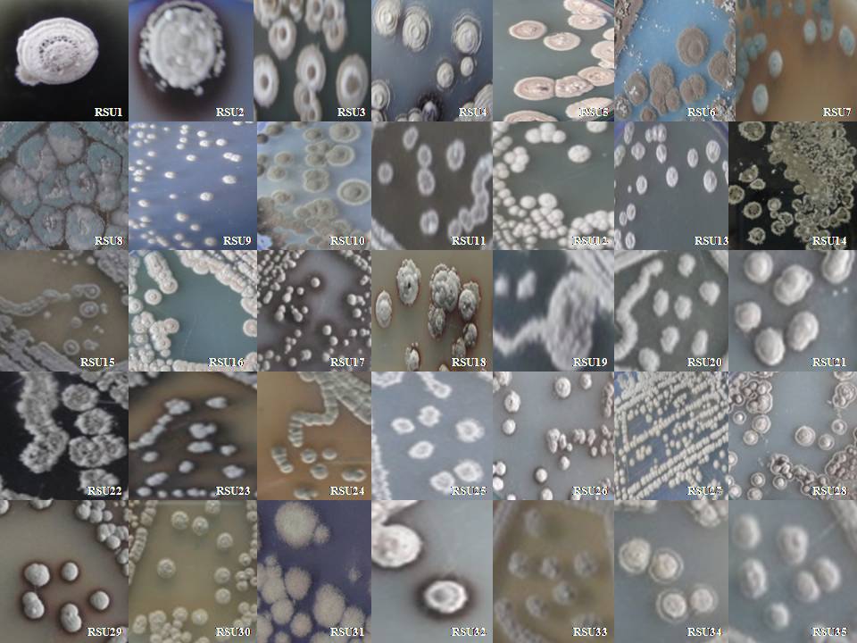 | RSU27 | Gray color tiny powdery colonies | Smooth | 4-6 mm | - |