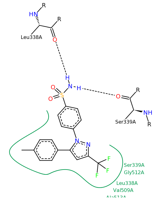 Fig. 1: Graphical representation of the ligand; celecoxib binding conformation onto 3LN1