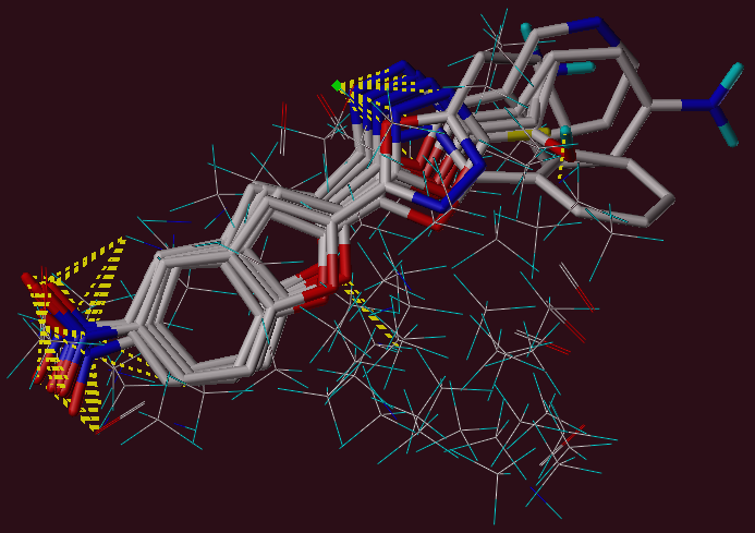 Fig. 2: Energy minimized and conformationally analyzed structures alignedagainst common atoms interacting with protomol.