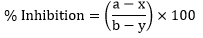 Where x is the mean paw volume of rats before the administration of carrageenan and/or test compounds or reference compound (test group), a is the mean paw volume of rats after the administration of carrageenan in the test group (drug/compound treated), b is the mean paw volume of rats after the administration of carrageenan in the control group and y is the mean paw volume of rats before the administration of carrageenan in the control group.