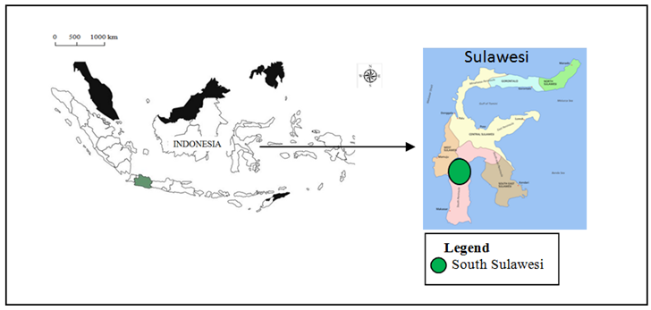 Fig. 1: Map showing the location of the sampling sites. Sidrap district, South Sulawesi, Indonesia