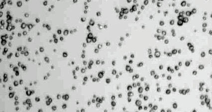 Fig. 1: The observed spherical shape of re suspended freeze dried Ibuprofen nanodispersions