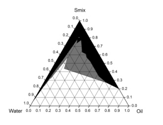 The different formulations were made in triplicate. The pseudoternary phase diagrams were drawn by Origin Pro 8 program. The ME regions were measured by ImageJ 1.47v program.
