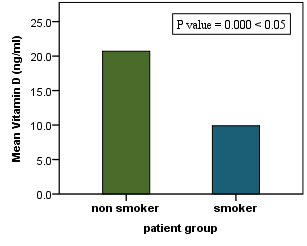 In this study, vitamin D deficiency was more common in the smoker groups and the effect of smoking on vitamin D metabolism may be one probable reason. Mechanisms by which smoking affects vitamin D metabolism are still unclear. One possibility is that chemicals in tobacco smoke may have a direct effect on vitamin D metabolism and function, like an accumulation of cadmium in the kidney.