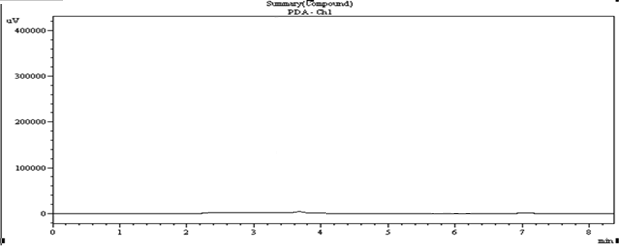 The mobile phase was selected on the basis of best resolution, peak purity index, peak symmetry and number of theoretical plates. Optimization of the mobile phase was performed based on trial and error method. In this method different mobile phase trials were tried in different buffer with differ in ratio and pH of the mobile phase. After that trial with buffer (0.01 M sodium dihydrogen orthophosphate): acetonitrile (40:60 % v/v) (pH 6.5), in this all three drugs are full fill all the criteria of system suitability test. So, finally buffer (0.01 M sodium dihydrogen orthophosphate): acetonitrile (40:60 % v/v) (pH 6.5) was selected as mobile phase.(Fig.3)