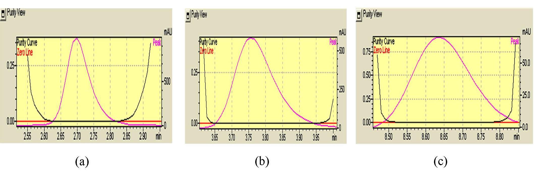 Fig. 4d: Peak purity of (a) INH (b) RIFA (c) PIPE