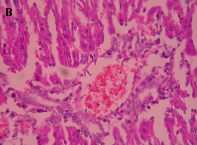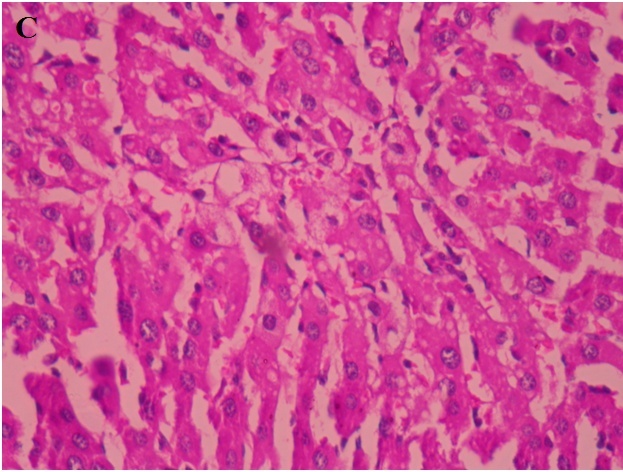 Liver of individual animal was excised, fixed in 10% buffered neutral formalin and fixed in bovine solution. They were further processed for paraffin embedding following standard microtechnique [33]. Sections of liver stained with alum-hematoxylin and eosin were observed photomicroscopically for histopathological changes.
