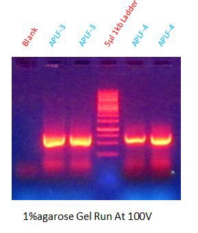 Fig. 7: Genomic DNA extracted from APLF-3 and APLF-4, run on 0.8% Agarose gel electrophoresis and visualized with propidium iodide
