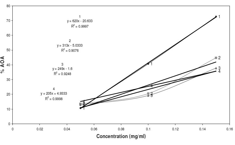 Fig. 2: Antioxidant oxidative activity percentage (AOA%) using DPPH