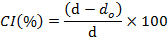 30 g powder was gently poured into a 100 ml measuring cylinder and the volume (Vo) occupied by the powder without tapping was recorded. After 200 taps on the table, the occupied volume (V) was read. Each experiment was carried out in triplicate. The bulk density (do), tapped density (d), the compressibility index (CI) and Hausner’s ratio (H) were calculated using the following equations.