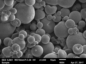 Fig. 1 and fig. 2 show the morphology and particle size distribution of ESE and GSE, respectively. The SEM results revealed that the particles of ESE and GSE were in spherical or almost spherical shapes with smooth surfaces. The average diameters of ESE and GSE were found to be 22.4 µm and 30.1 µm, respectively.