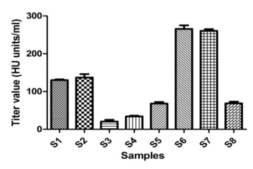 | S. No. | Plant species | Family | Titer value (HU/mg) |