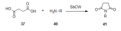An alternative, fast and clean method was reported using sub-critical water for the synthesis of substituted succinimide 41 by reaction of succinic acid 37 with aniline 40 in water at 280ºC in 30 min with high yield (Scheme 11 and 12) [25].