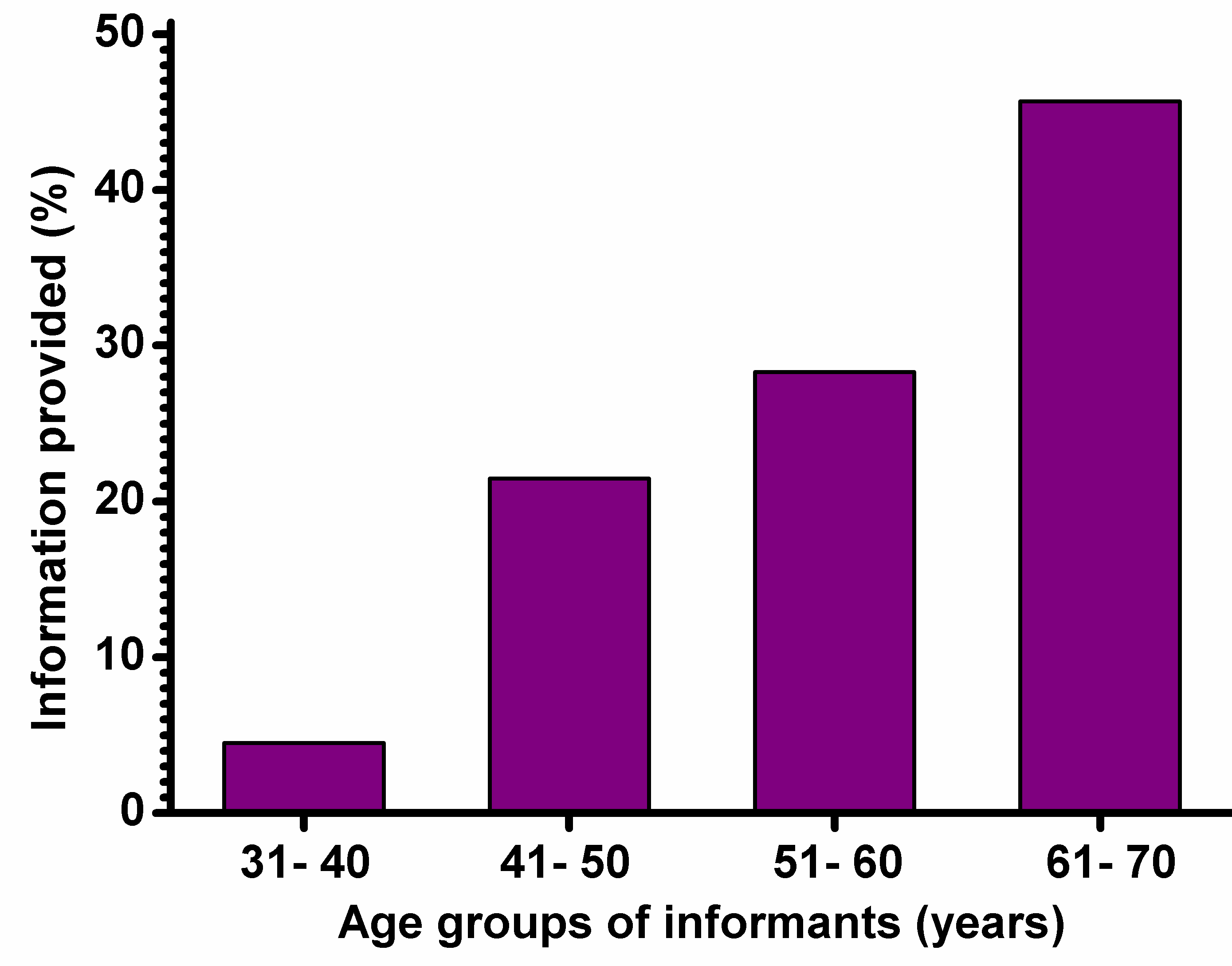 Fig. 1: Different age groups of traditional healers involved during field survey and their contribution towards information sharing