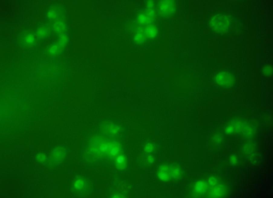 Fig. 4a: Detection of Apoptosis Acridine orange/ Ethidium bromide Dual staining - Hep 3B cell line Control