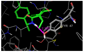 The fungicide carpropamid exhibit single interaction with Tyr47 of SCD and the possessed glide score was -8.17 Kcal / mol. The interaction of the fungicide and the target was shown in Fig.3.