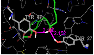 | Gingerol | 2 | TYR47,TYR27 | -8.32 |