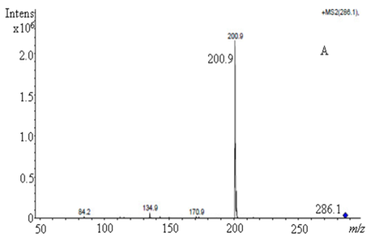 The specificity was investigated by monitoring the mass of each reference standard using multiple reactions monitoring (MRM) method.