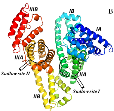 HSA a non-glycosylated single polypeptide chain allosteric protein fig. 1B consists of 585 amino acids and resembles a heart shape three-dimensionally. Structurally, the protein is divided into three domains I (residues 1-195), II (196-383) and III (384-585) with 17 disulfide bridges. HSA is known to bind to a variety of both exogenous and endogenous drugs with high affinities. This high affinity are attributed to its allosteric nature thereby forming an important determinant for evaluating the pharmacokinetic behaviour of many drugs. Since HSA will be synthesized and secreted from liver cells, we presume that the binding nature of VGC towards HSA might alter the hepatic esterase activity of hydrolyzing VGC to its prodrug galancicolvir. To the best of our knowledge, till date, there are no reports wherein the binding properties of VGC towards HSA are studied. Hence in the present study, we aim to study the binding studies of VGC towards HSA by multi spectroscopic and computational studies.