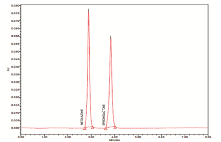 Fig. 3: chromatogram showing specificity of metolazone and spironolactone.