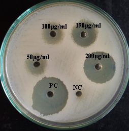 Methods: Well diffusion assay was performed to find out the antimicrobial activity and Resazurin dye reduction method was performed to find out MIC of the extract.