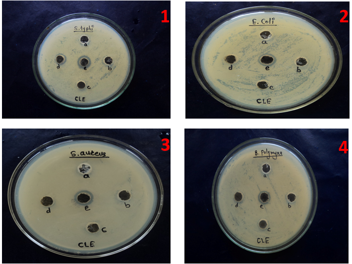 | Escherichia coli | Salmonella typhi | Staphylococcus aureus | Bacillus polymyxa | |