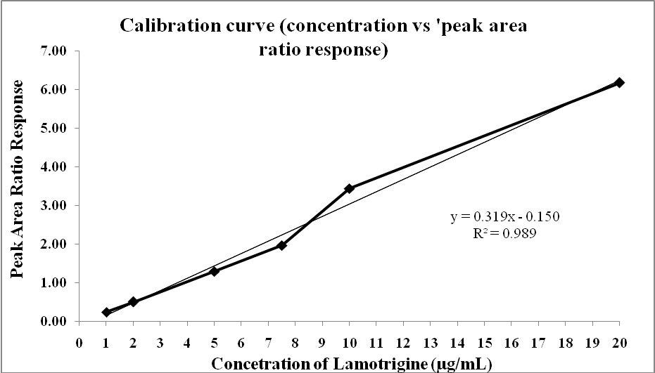 Linearity of the method was in the concentration range 1- 20 μg/mL of Plasma (Figure 3).