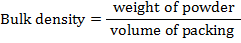 A quantity of accurately weighed drug excipient powder blend from each formula, previously shaken to break any agglomerates formed was introduced into a 25 ml measuring cylinder, and the initial volume was noted and bulk density calculated by following formula [15]: