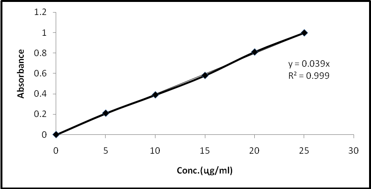λ max of verapamil hydrochloride was determined in water. The calibration curve of verapamil hydrochloride shown linearity as per Beers Lambert’s law at 278 nm represented in fig. 1.