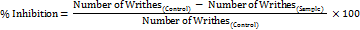 | Samples administration (mg/kg) | Number of Writings | Inhibition percentage (%) | |