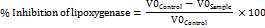 | Samples (µg/ml) | Xanthine oxidase inhibition (%) | Lipoxygenase inhibition (%) |