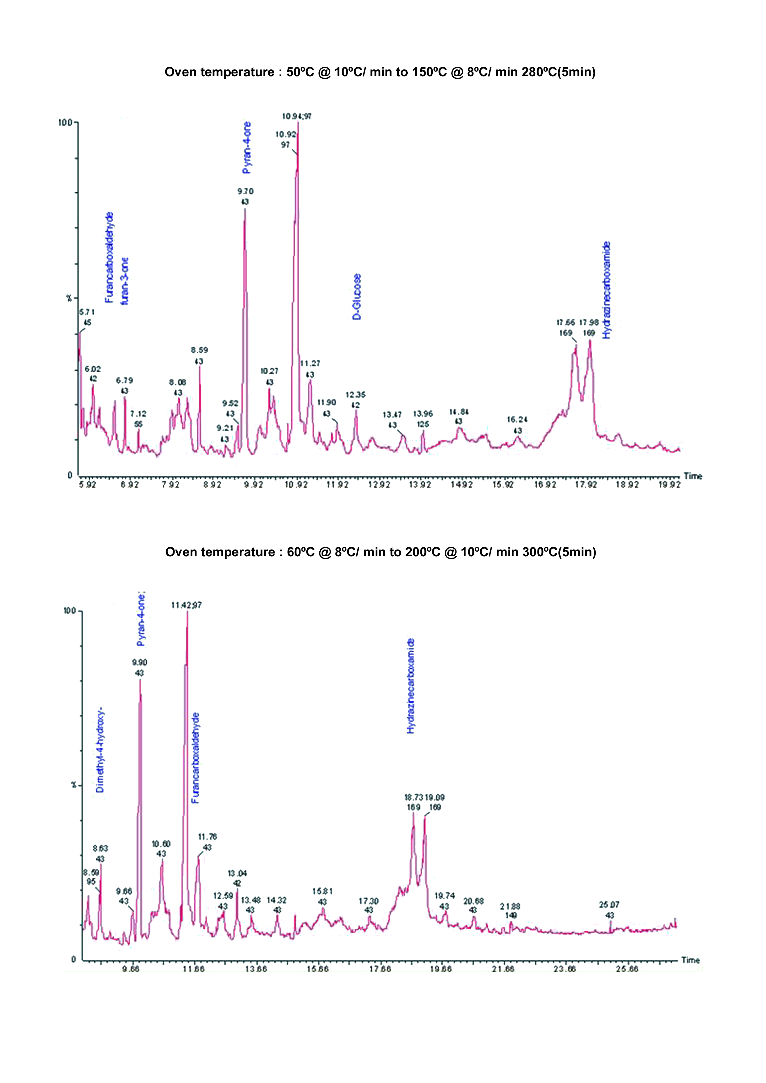 Fig. 1: GC-MS spectra of Balarishta performed in two different oven temperature programs.