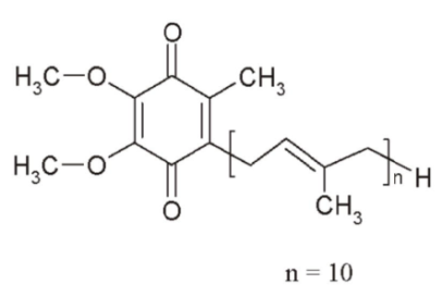 Co-enzyme Q 10 (co-enzyme Q10; ubidecarenone) is a biologically active compound that is similar in chemical structure to menaquinones (vitamin K2). Being a part of a family of quinone compounds known as coenzyme Q, co-enzyme Q10 is characterized by a quinone ring attached to a repeating series of side-chain isoprene units (fig. 1). The number of isoprene units is denoted by the co-enzyme-X designation. In the case of co-enzyme Q10, there are 10 repeating isoprene units [2].