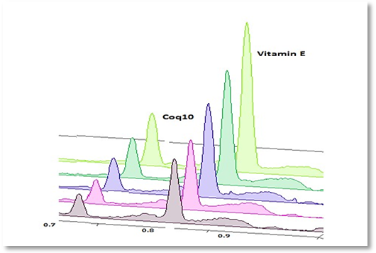 Johanna K Lang, Lester Packer. Quantitative determination of vitamin E and oxidized and reduced coenzyme Q by high-performance liquid chromatography with in-line ultraviolet and electrochemical detection. J Chromatogr 1987;385:109-17.