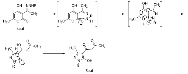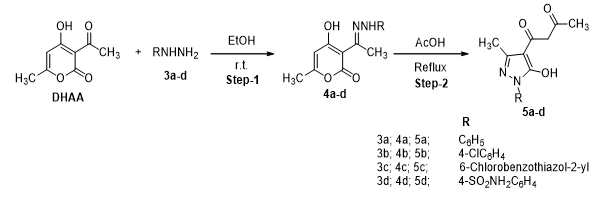 A plausible mechanism [14] for the formation of 1-[1-aryl / (benzothiazol-2yl)-5-hydroxy-3-methylpyrazol-4-yl]-butane-1,3-diones (5a-d) is outlined in Scheme 2.