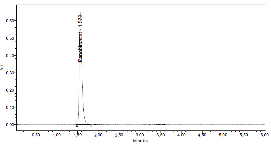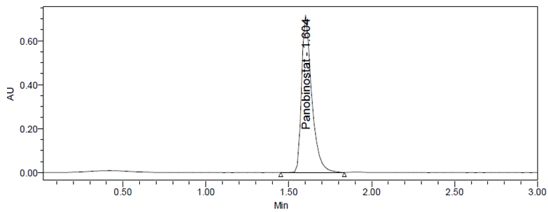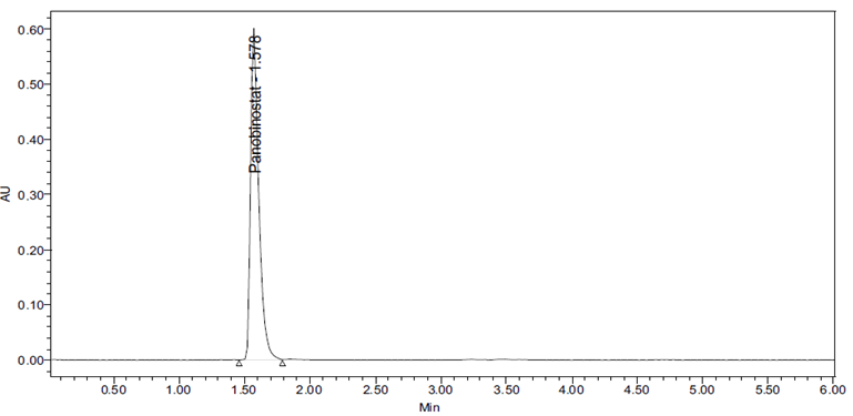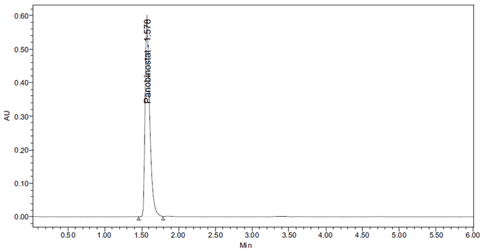 Conclusion: The developed method for the estimation ofpanobinostat can be utilized for the routine analysis of pharmaceutical dosage form.