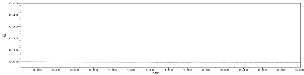 The method was found to be accurate as the % recovery was 99.46%-99.98% and was within the limits. The % RSD was found to be 0.98, indicates that the method was precise. The method was found to be specific, as there is no interference of retention time of placebo peak with that of drug peak. The placebo chromatogram was shown in fig. 5.